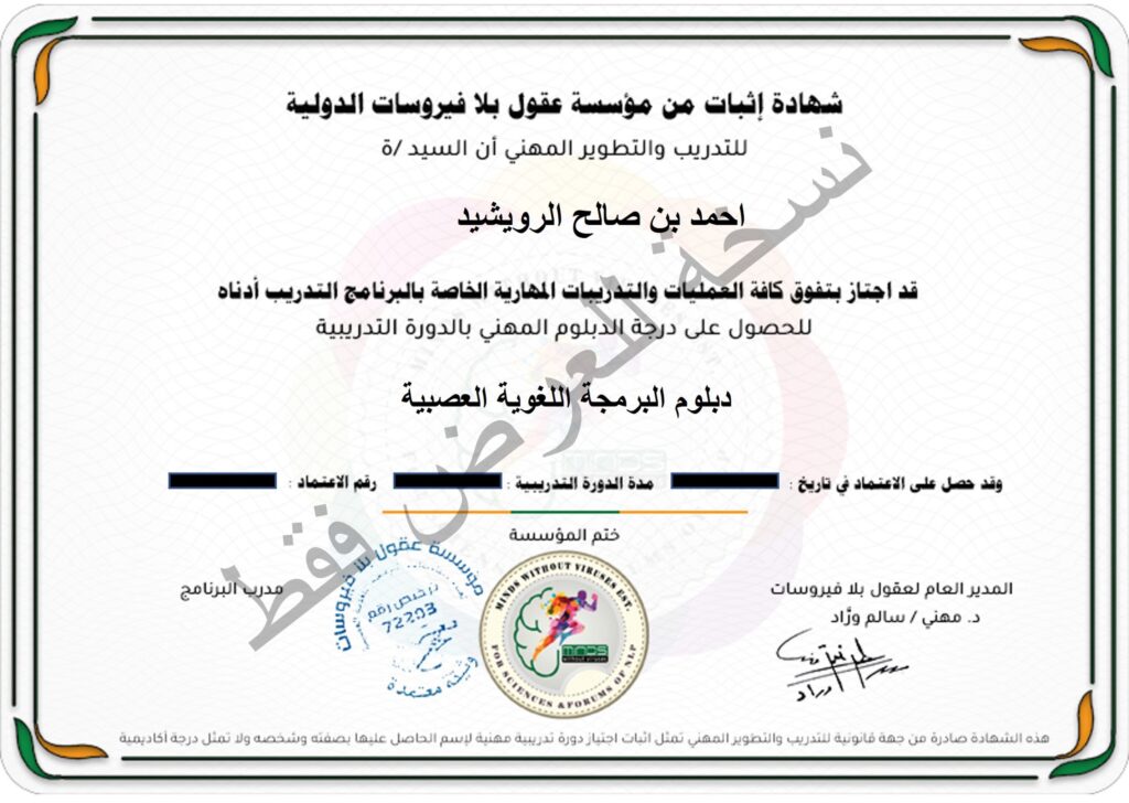 ويقدم الدورة كاملة المدرب الدولي المحترف "د. سالم ورَّاد" المدير العام لمؤسسة عقول بلا فيروسات الدولية
